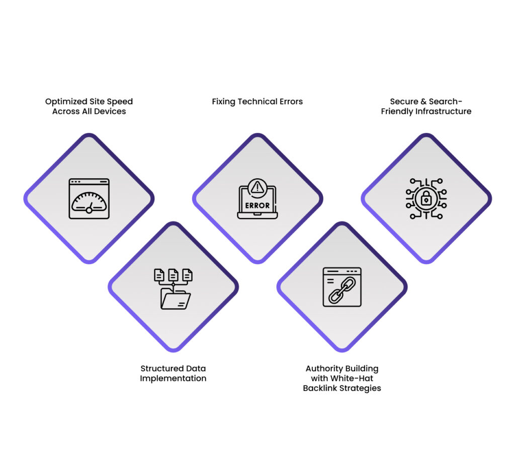 A strong backend structure makes it easier for search engines to clearly understand and index your site properly. Our services for technical SEO are comprised of: