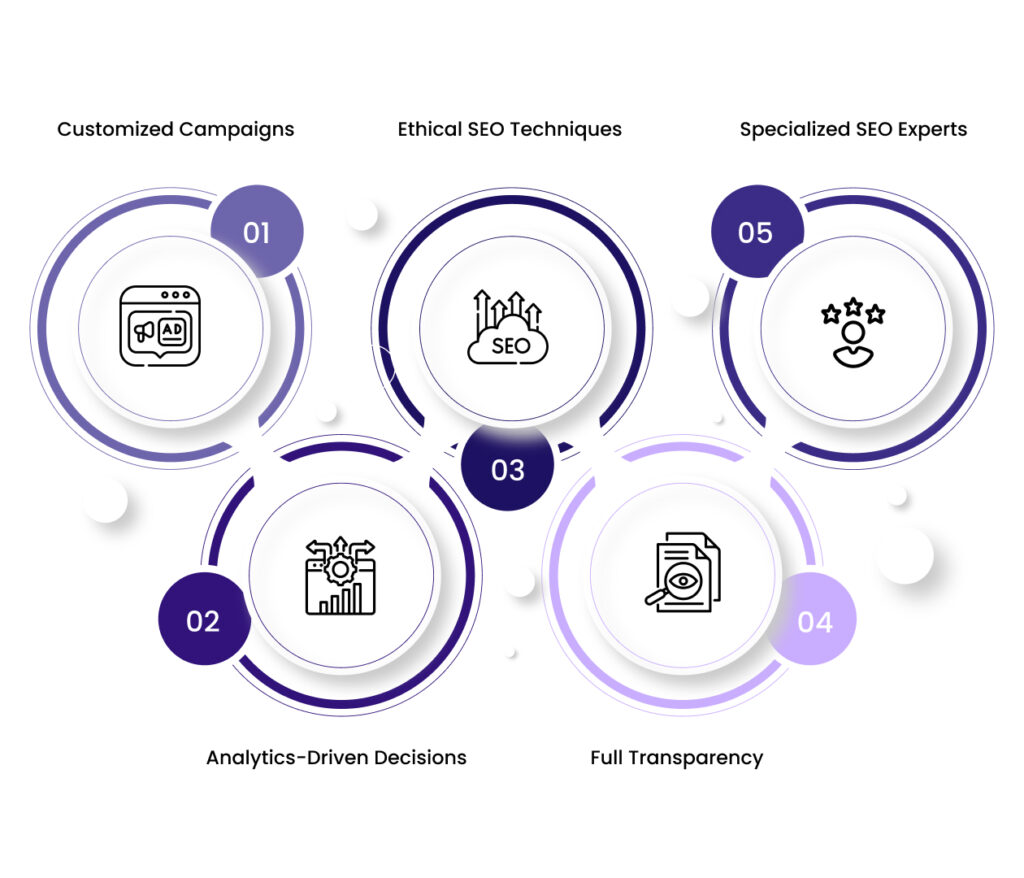 - Specialized Experts: Our dedicated and professional team of specialists are highly focused and determined to deliver results based on SEO trends, updates, and innovations.