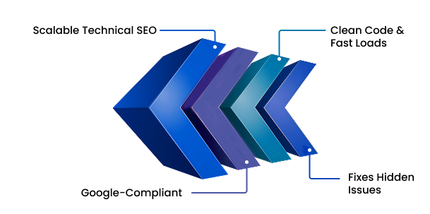 Technical SEO for enterprises is fundamental for long-term digital performance. Enterprise websites feature thousands of pages, intricate structure, and custom development layers. Our experts deliver enterprise technical SEO that is powerful, clean code, fast loads, crawlable, and structured data implementation to Google's standards.